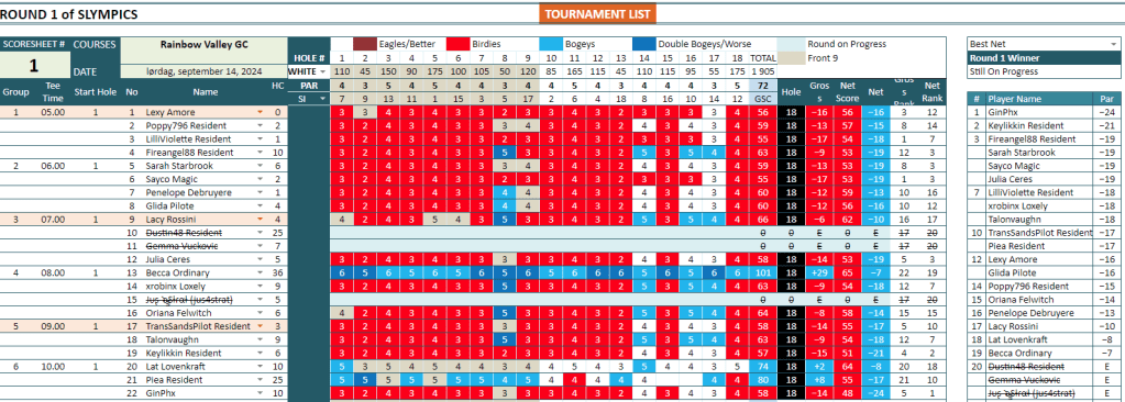 I shot a 57, comprising three pars and 15 birdies. I’m incredibly proud of that round. That’s far and away my best round at Rainbow Valley, and I feel great about it. With my handicap of six, that put me at a 51 for the day. For a time my score was atop the leader board, but GinPhx shot a 58, netting a 48 after their handicap of ten.