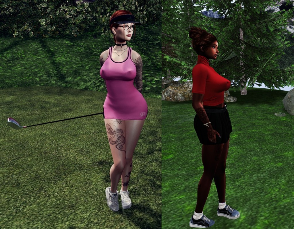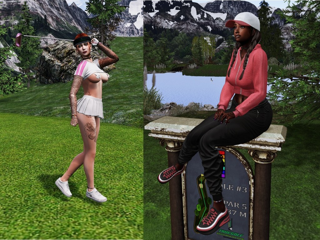 I’m wearing a slightly more reserved top from Belzebubble – it’s one of my favorite hoodies in SL. The joggers are from Addams and feel like they’d be comfy just about anywhere, including a day at the course.